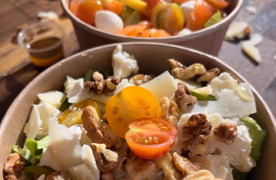 Salades fraîches préparées sur place avec les pousses du moment prises à notre maraîchère. Accompagnées de leur vinaigrette maison. Salade poulet, Salade Saumon, Salade Lonzo et Salade Chèvre Miel. A vous de choisir!